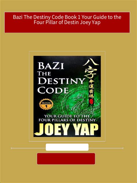 Read Online BaZi- The Destiny Code Ebook Kindle Editon online is a convenient and frugal way to read BaZi- The Destiny Code Ebook you love right from the comfort of your own home. Yes, there sites where you can get Kindle Editon "for free" but the ones listed below are clean from viruses and completely legal to use.